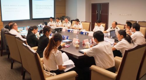 Am 16. Oktober 2013 flog die Delegation dann nach Shenzhen weiter, um in diesem wichtigsten Exporthafen Chinas die Exportkontrollpunkte des örtlichen Amtes für Import- und Exportinspektionen und Quarantäne zu besichtigen. Zudem besprach die Delegation mit Frau Huang Manxue, Abteilungsleiterin für Marktüberwachung des Shenzhener Institutes für Normung und Technologie, Kooperationsmöglichkeiten im Rahmen der Deutsch-Chinesichen Arbeitsgruppe Produktsicherheit und des Deutsch-Chinesischen Projektes Qualitätsinfrastruktur.