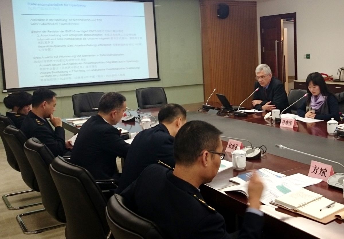 Am 5. Dezember 2014 kamen deutsche und chinesische Experten in Peking zusammen, um sich über Herausforderungen in der Entwicklung von Referenzmaterialien auszutauschen. Der Workshop steht im Kontext einer in der Deutsch-Chinesischen Arbeitsgruppe Produktsicherheit vereinbarten Projektlinie, die sich mit der gemeinsamen Definition von Anforderungen an Referenzmaterialien für anorganische Elemente in Spielzeugen befasst.