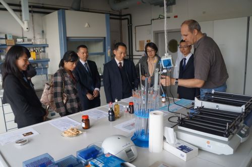 The study tour from 31 March to 2 April 2014 aimed to achieve a common level of knowledge about the current research status and the development approaches to reference materials in both countries, in order to plan the further implementation of the project´s core topic on the basis of a common knowledge. The Chinese delegation – consisting of specialists from local import-export inspection and quarantine offices in Shanghai and Shenzhen and the provinces Guangdong, Jiangsu and Zhejiang, first visited the Federal Ministry of Economic Affairs and Energy (BMWi) and the Federal Institute of Materials Research and Testing (BAM) in Berlin, before leaving to Stuttgart to inform themselves about the research of Fraunhofer Institute for Manufacturing Engineering and Automation concerning reference materials for paints and coatings.